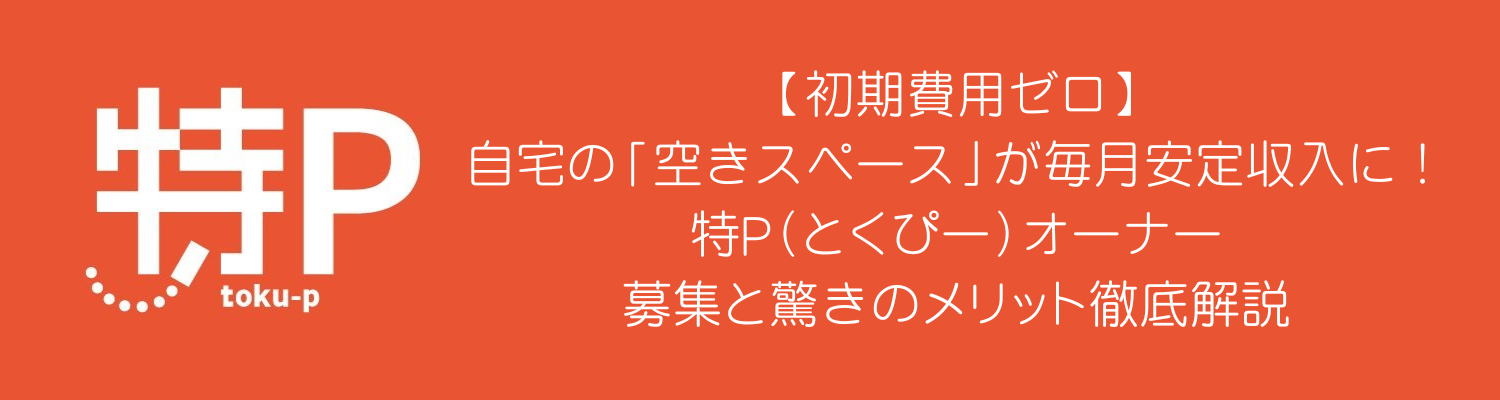 【初期費用ゼロ】自宅の「空きスペース」が毎月安定収入に!特P(とくぴー)オーナー募集と驚きのメリット徹底解説